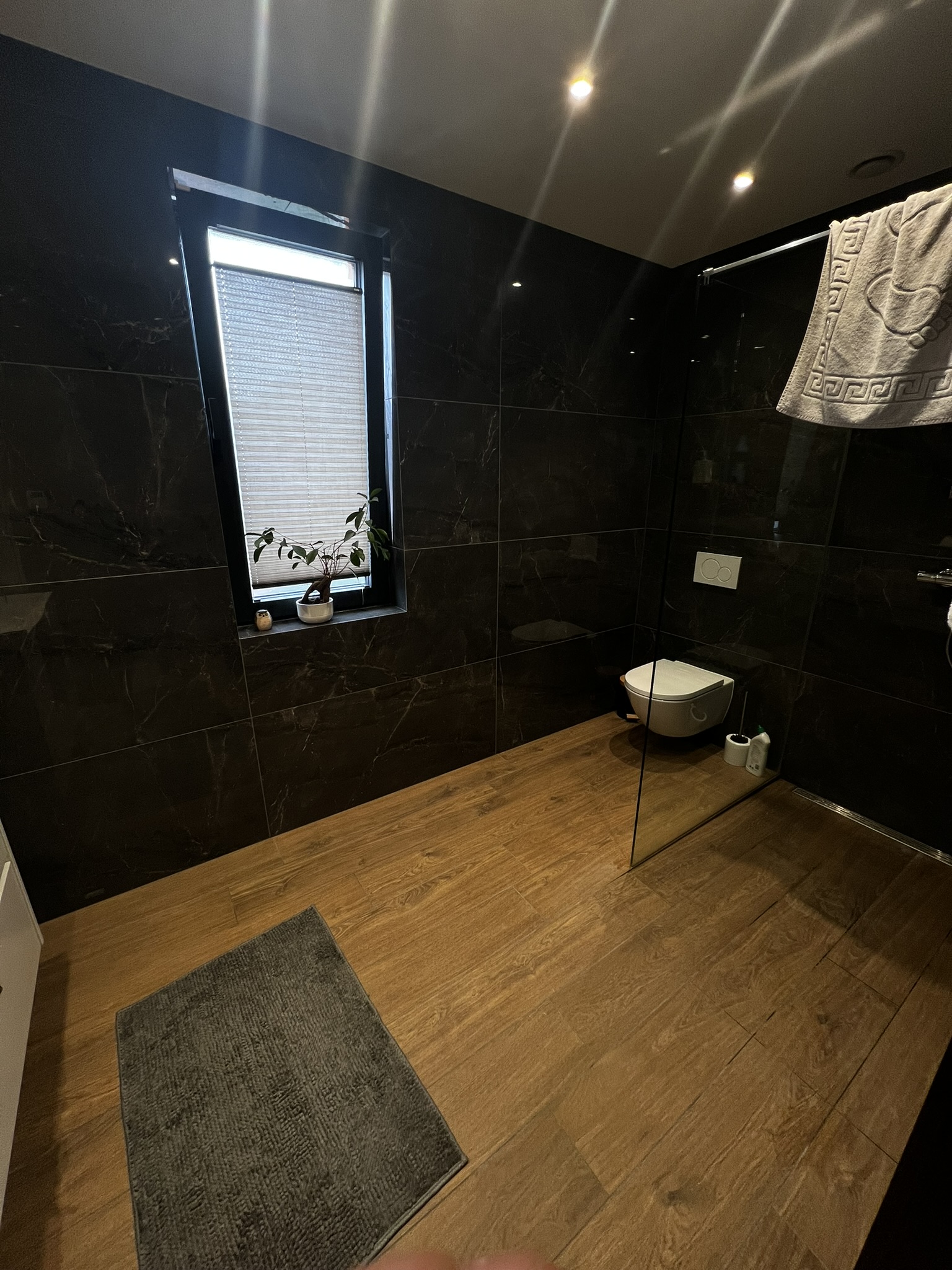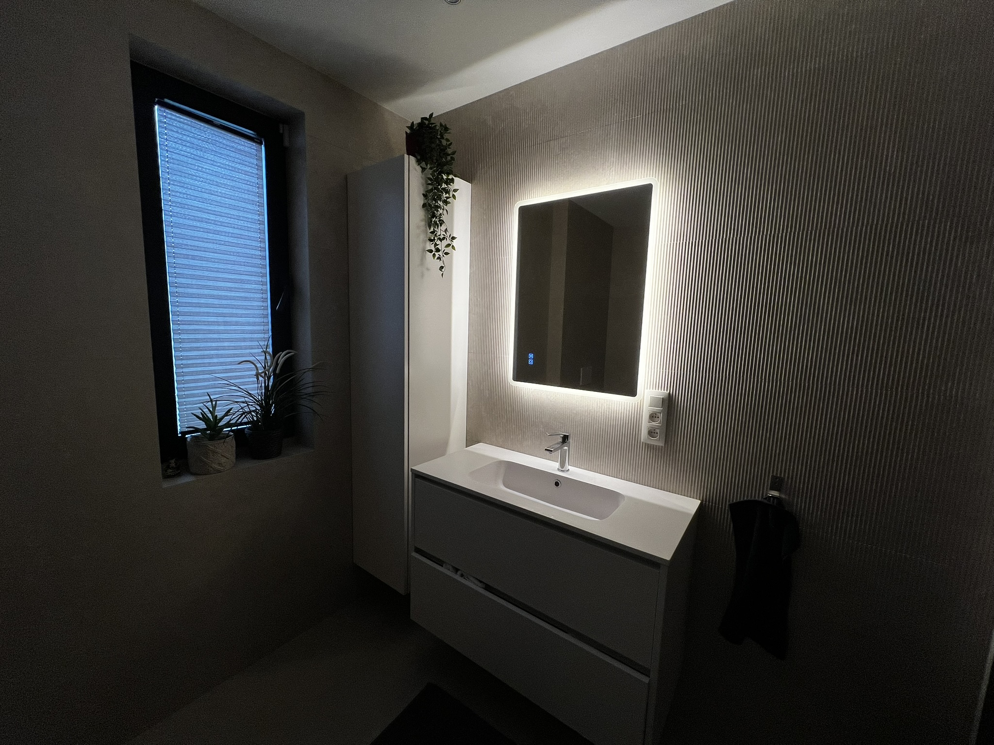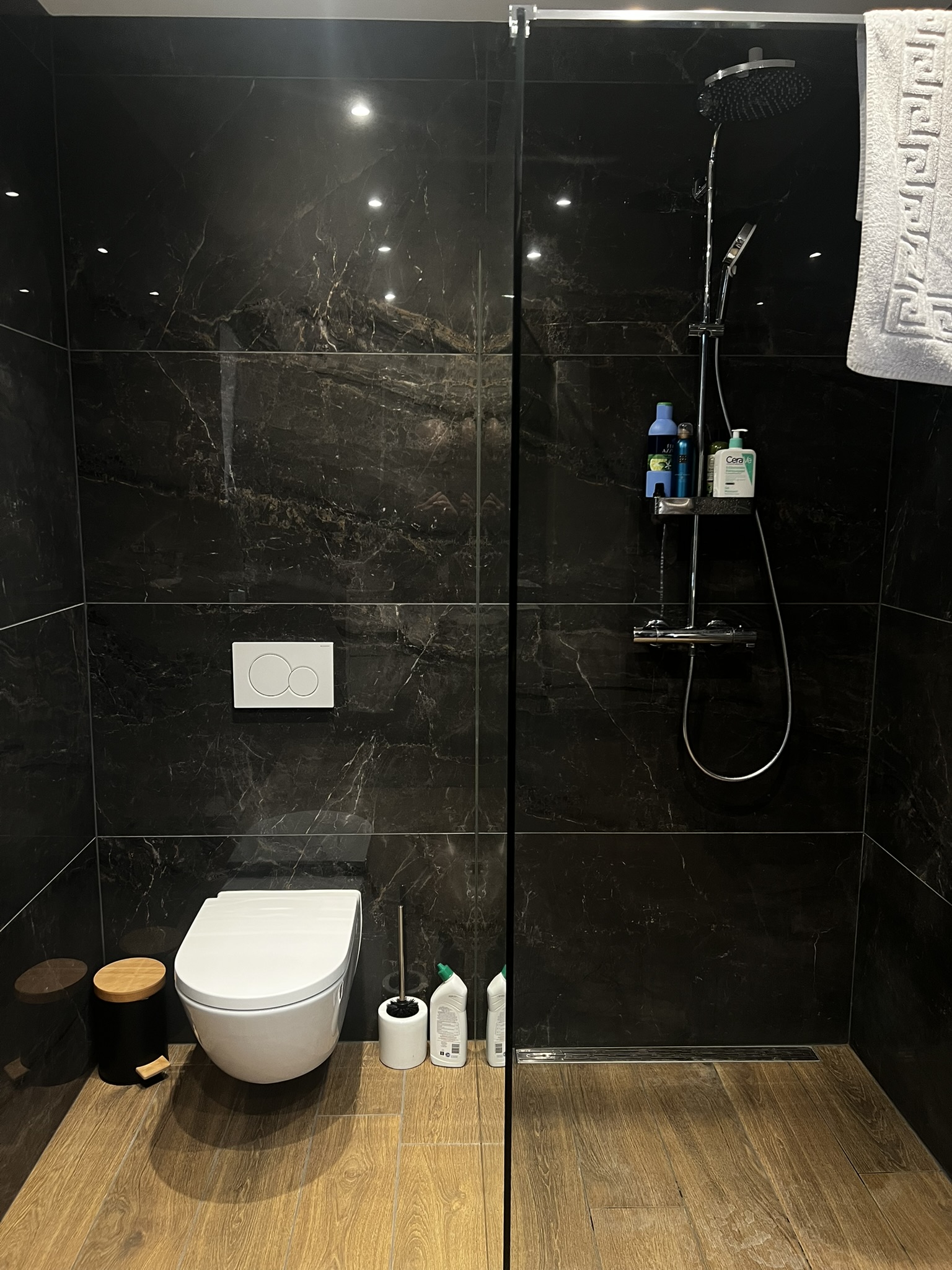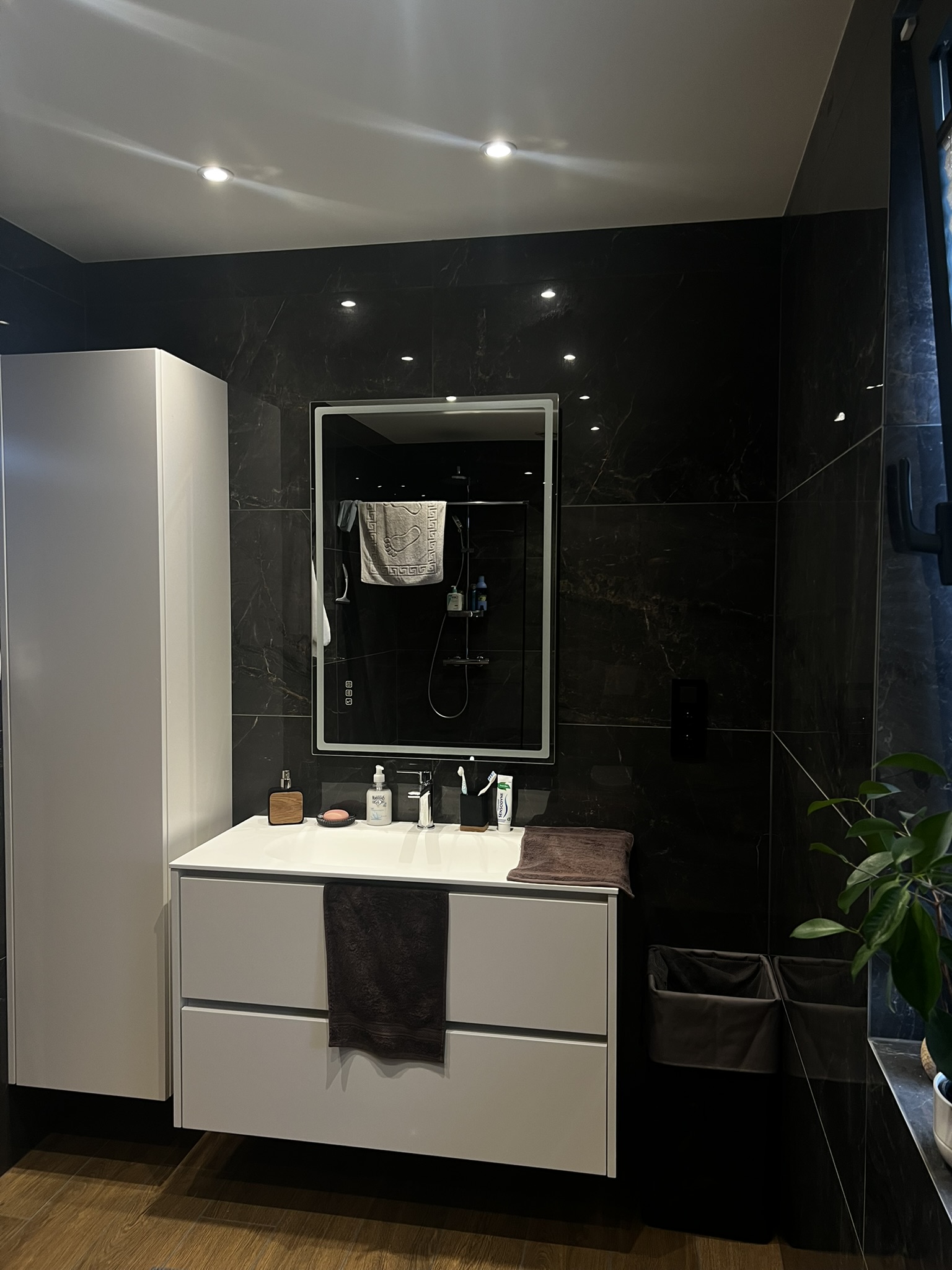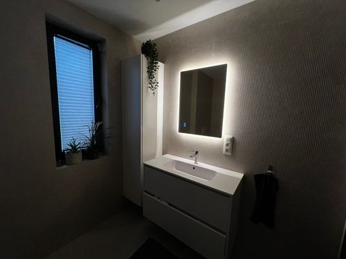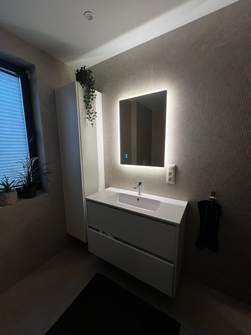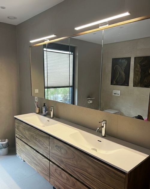 Selection of recent bathroom renovations and constructions, combining technical execution, custom finishes, and integrated lighting.