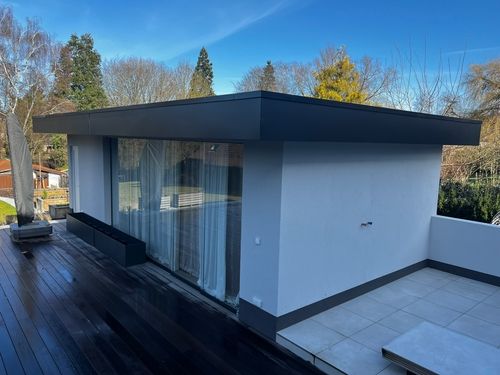 This project involved the complete construction of a modern garden summer house, from foundation to final exterior finishes.