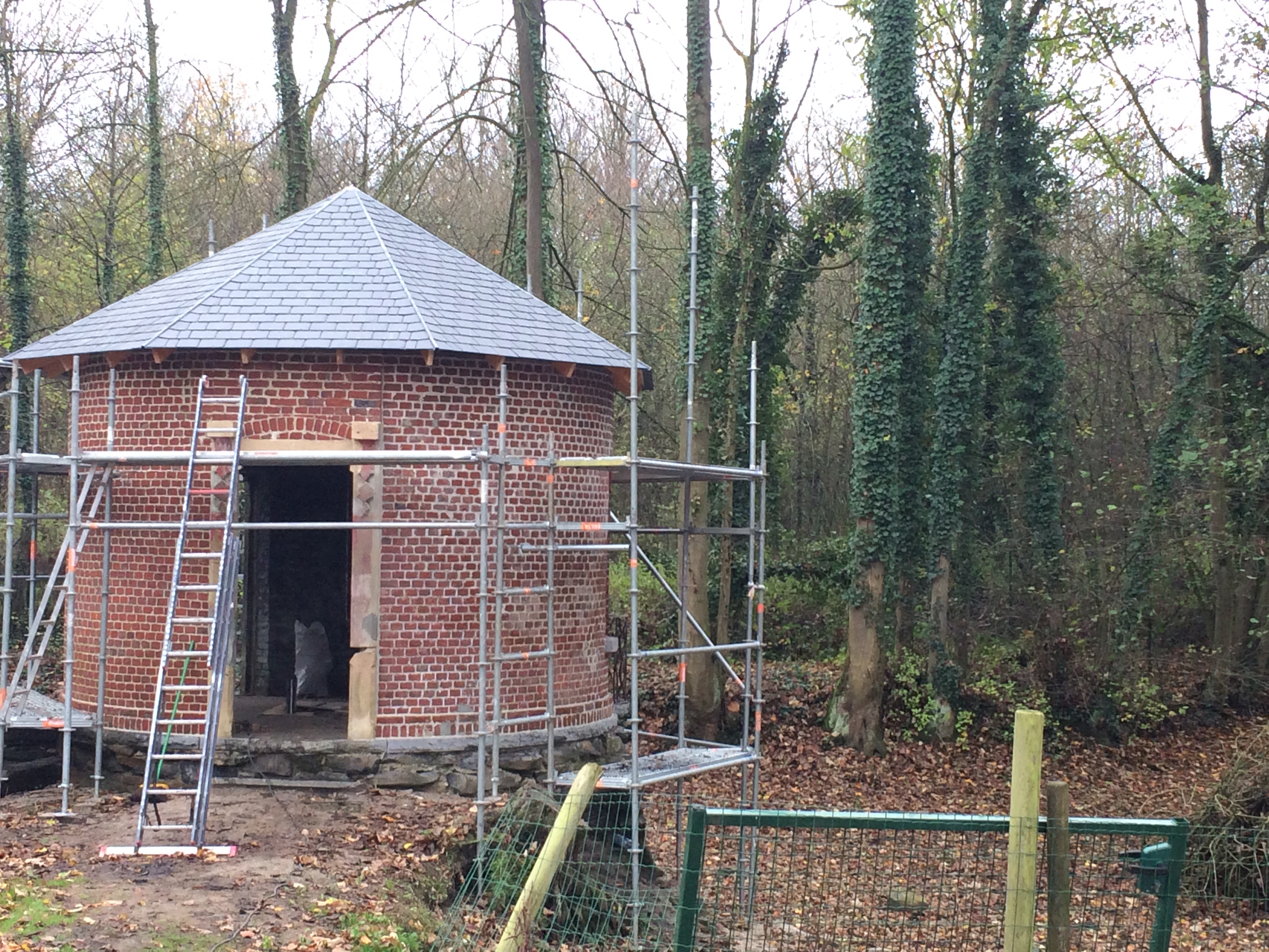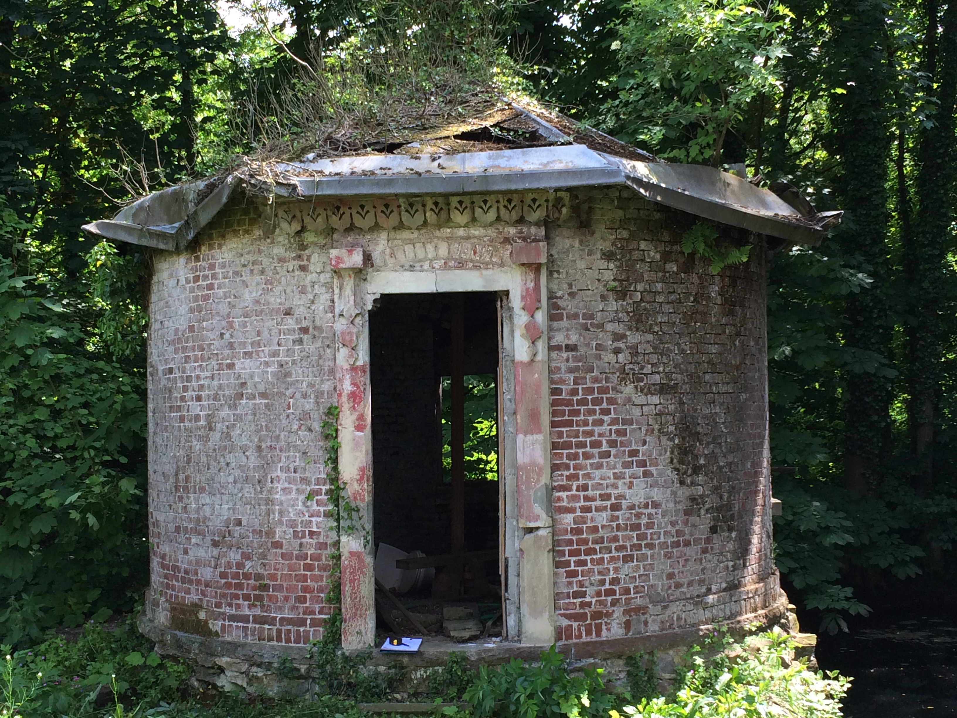 Complete structural renovation and reconstruction of a historic circular brick pavilion, including masonry restoration and new timber roof structure.
