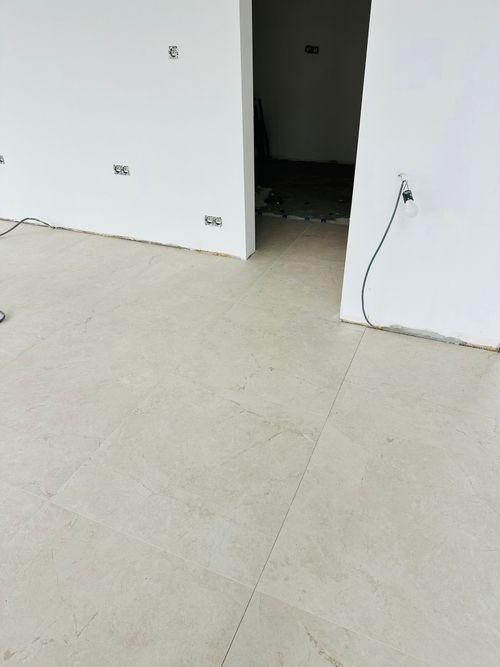 The works included surface preparation, layout planning, and precise placement using a professional leveling system to ensure perfectly aligned joints and a flat finish. Due to the size of the tiles, special care was taken during handling and positioning to guarantee durability and aesthetic consistency.