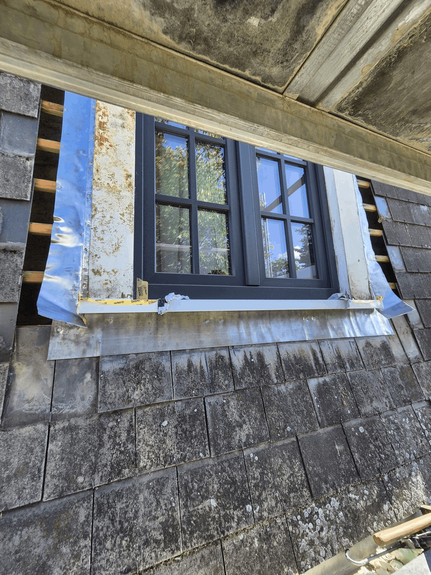 The work included preparation of the façade, integration with the window frame, and proper sealing to ensure durability and long-term protection against moisture.